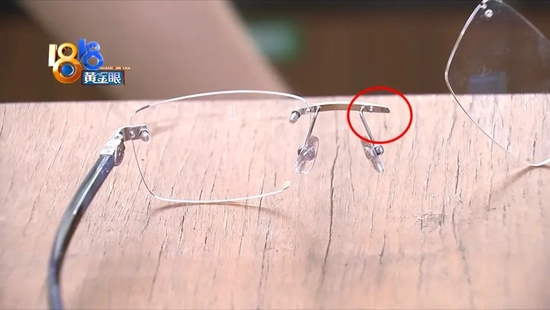 目前损坏的镜框就放在门店里,这个位置,原本有两个用于连接镜片的金属凸起,现在只剩一个了。周女士说,这会导致镜片无法正常安装,更别提佩戴了。