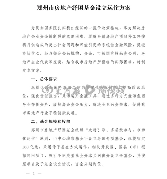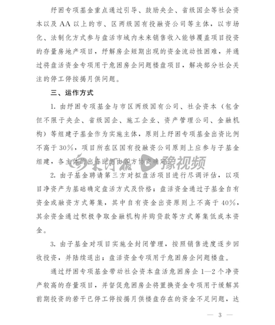 社会关切的房地产纾困基金来了!大河报豫视频记者获悉,《郑州市房地产纾困基金设立运作方案》已由郑州市人民政府办公厅印发至各开发区管委会,各区县(市)人民政府及各部门、各有关单位。