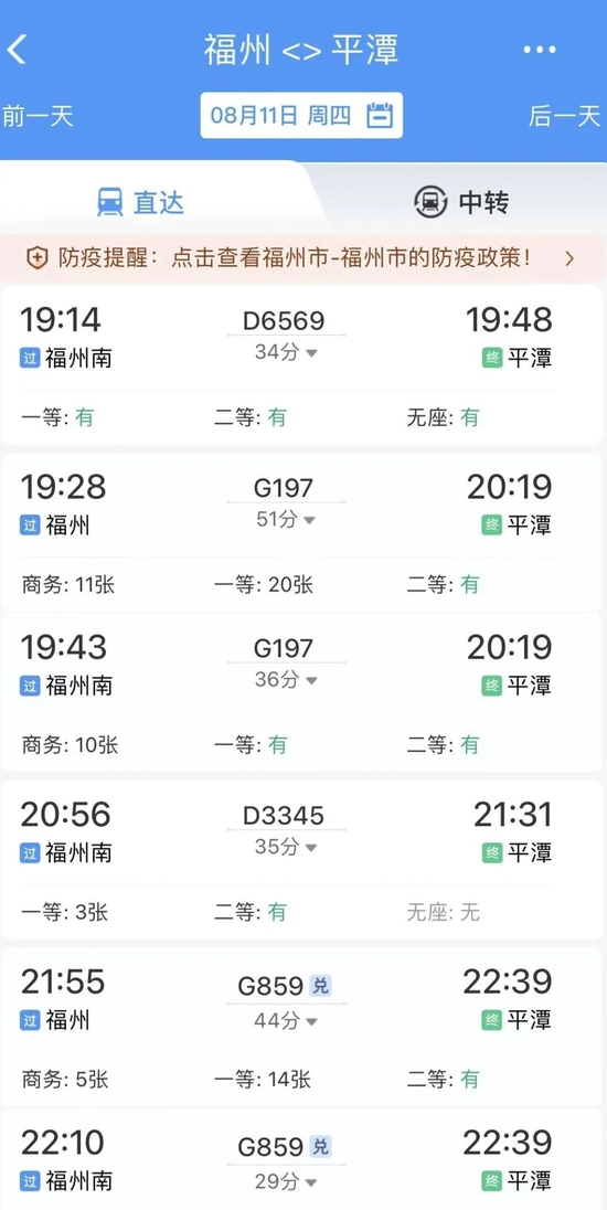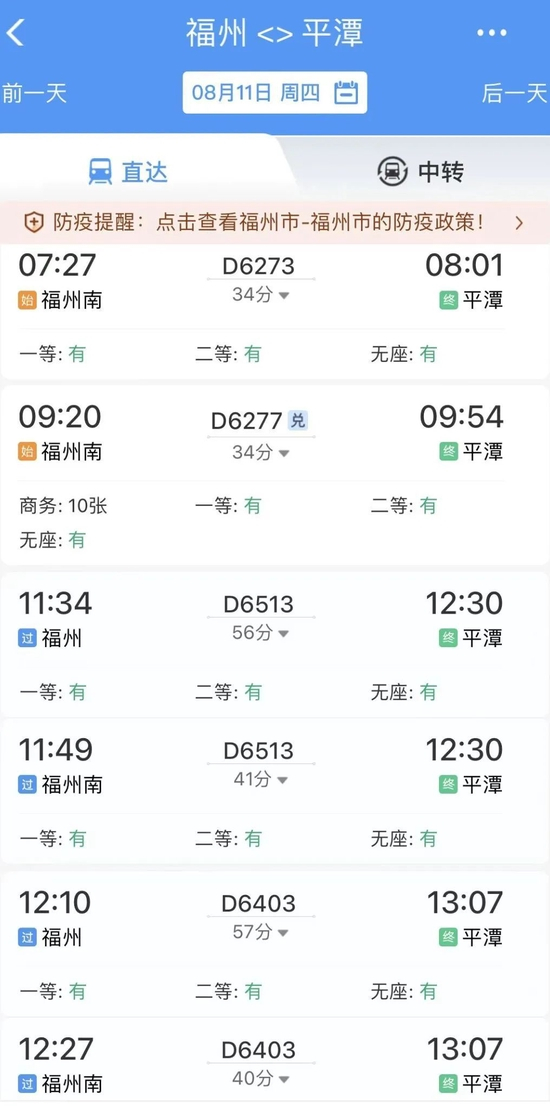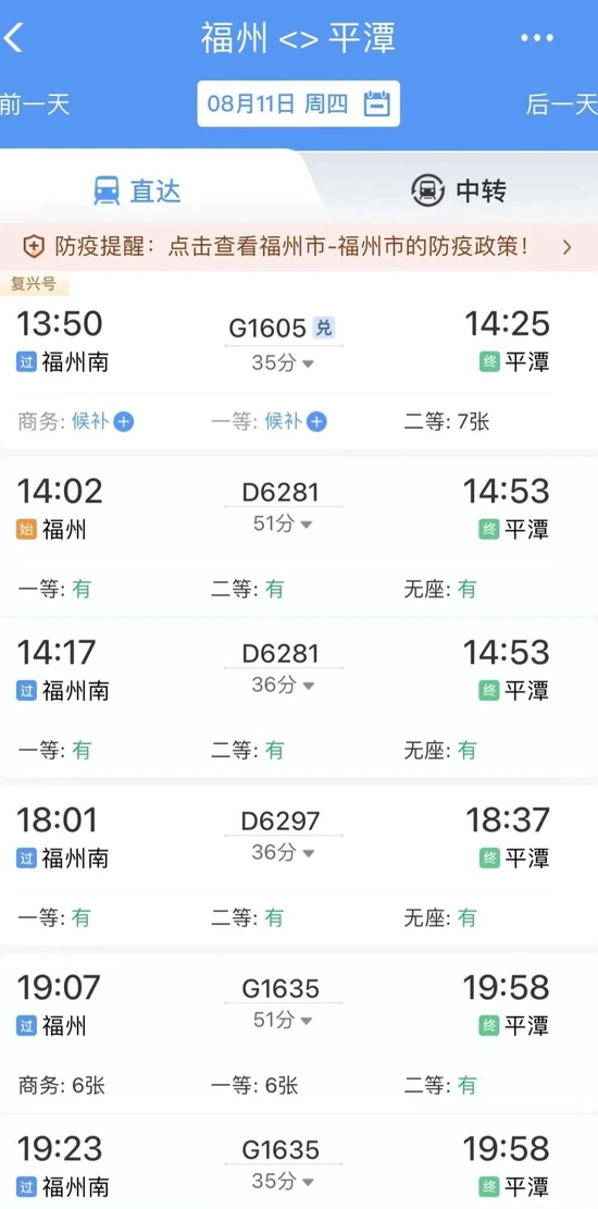 目前,平潭站日常开行动车组列车14对,节假日加开2对,主要开行方向包括北京、上海、深圳、西安、南京、南昌、赣州、厦门等。没有直达车的小伙伴也不用着急,福州至平潭有多趟动车组可供选择,还有复兴号哦!
