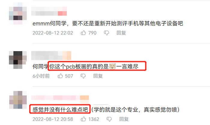 相比活字阵带来的视觉冲击和情感共鸣,围绕视频前半段那个键盘的争议则要多得多。有相关专业的网友提到,这款键盘并没有什么技术难度,何同学画pcb的能力有待提高;也有观点犀利地指出,何同学对自己核心竞争力的定位出现偏差,不如重新开始测评。