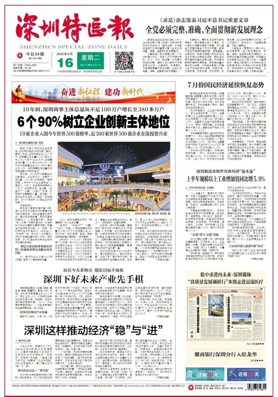 在深圳,“宇宙大厂”出圈、“小巨人”扎堆。10年间商事主体总量从不足100万户迅速增长至380多万户的“深圳速度”背后,更是创新赋能增长提质的“深圳高度”。