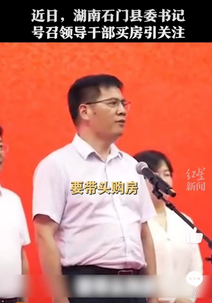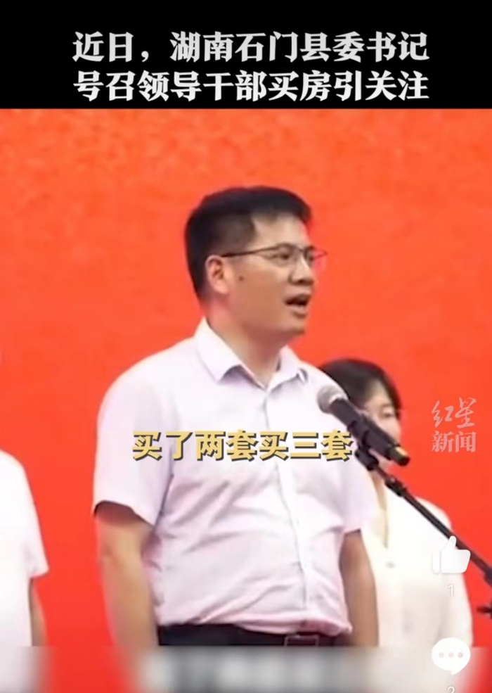 湖南石门县委书记号召买房:买了一套买二套,买了二套买三套