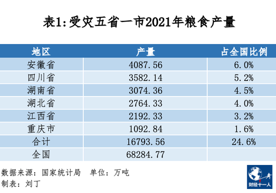 根据国家统计局的数据,2021年这五省一市的粮食产量合计为1.68亿吨,占全国总产量的24.6%(表1)。