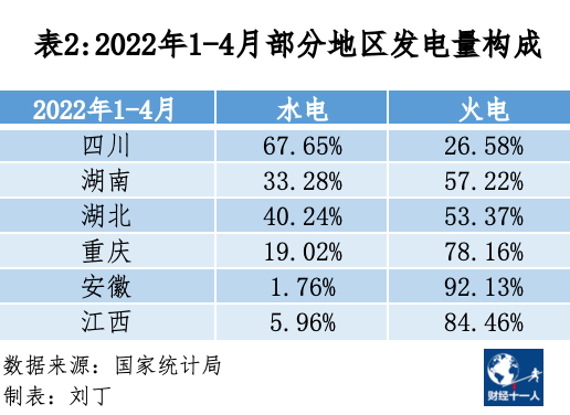 四川省发电以水电为主(表2)。高温极端天气、来水不足促成了四川当前的电力供应短缺形势。当前,四川面临着历史同期极端高温、历史同期最少降水量、历史同期最高电力负荷的三“最”叠加局面。