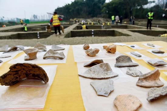 1月21日,四川成都市宝墩遗址,现场发掘出土了大量陶器残片和石器残件。摄影/本刊记者 张浪