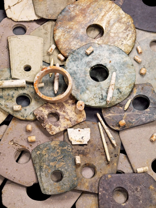 良渚遗址群文家山墓葬中布满玉器。图/浙江省文物考古研究所