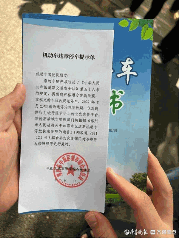 8月1日,郑州市城市管理局曾发布消息,8月20日前是违停联合执法工作的宣传期,这段时间对违法停车行为以劝导为主,张贴《机动车违章停车指示单》,不上传公安交管平台。8月20日起,将按照程序进行上传、处罚。