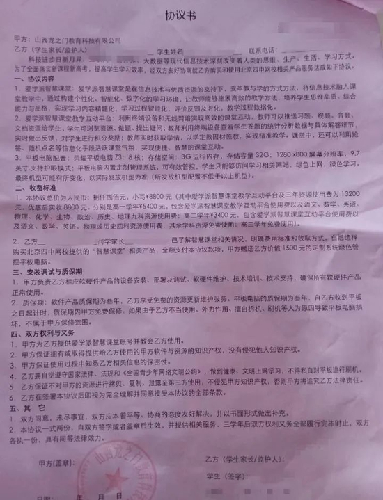 山西多校变相推销“平板+资源”:不交8800元孩子难进“智慧班”