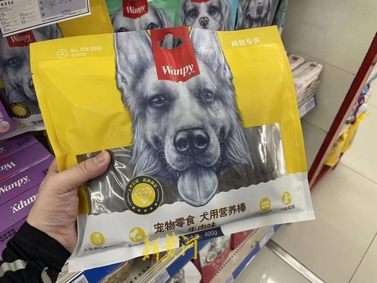 济南一大型商超内来自山东的中宠股份生产的宠物零食产品