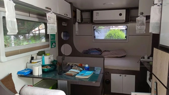 最后,他们用13万元买下了二手的B型房车。车长4.5米,宽1.9米,高1.8米,实际面积大约8平米。房车不大,但这是他们在深圳的第一个家,完全属于他们。