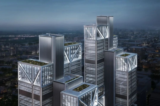大疆总部大楼,是全球顶尖设计团队福斯特继苹果公司总部之后的又一力作,最大亮点在于其全钢结构双塔,总用钢量5.5万吨的12个钢结构玻璃立面箱体“悬挂”其上,不仅创造出轻盈的悬浮效果,还解放了地面空间,为市民和员工提供一个宽阔的绿色休憩之地。