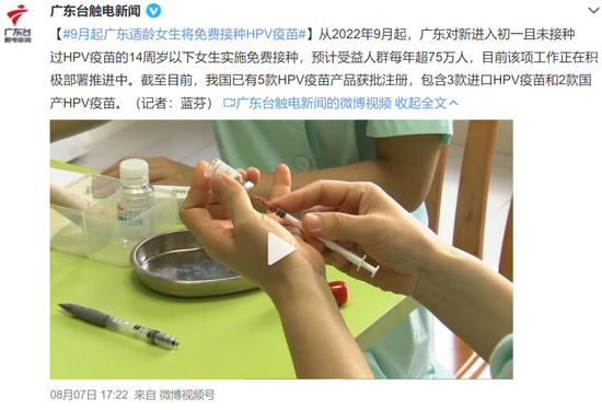 记者注意到,日前已有多地发布消息,推进部署为适龄女性免费接种。