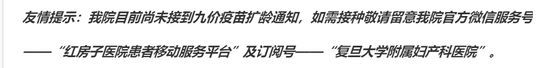复旦大学附属妇产科医院也表示:目前尚未接到九价疫苗扩龄通知。