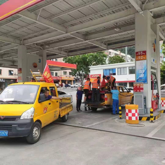 为全力保障救灾用油充足、高效,中国石油四川销售分公司在甘孜分公司康定片区3座加油站以及泸定片区5座加油站开辟抗震救灾绿色通道,为公安、消防等抗震救灾车辆提供加油服务。同时,紧急调配5台自带加油枪的小型油罐车辆,装载应急油品35吨,分别在泸定县、石棉县、天全县就近区域集结,实施现场应急保障加油。在雅安青龙油库、乐山7102油库集结5台油品配送车辆,满载应急油品150吨,随时准备向甘孜州配送油品。