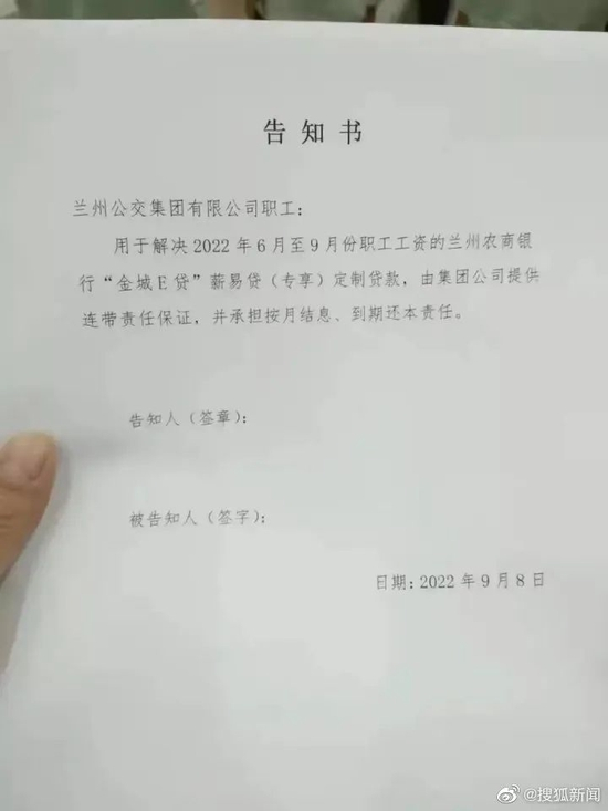 一张致“兰州公交集团有限公司职工”的告知书,在网络流传。