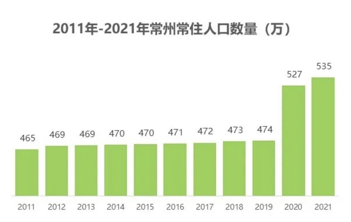人口可以反映这一结论。《财经》研究员研究发现一个很有意义的细节,常州的常住人口在2011年至2019年期间,整体变动不大,大约在470万人上下。从2020年开始,常州人口开始快速上升,至2021年底,常住人口达到了535万人,两年人口净流入超60万。