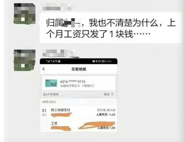 不过,对于聊天截图中有人只发1元工资的情况,多位医生均向界面新闻记者表示,不清楚为何会出现这种情况。不过也有业内人士认为,工资条上的信息主要体现在交了多少税,不包括劳务或奖金。“因为扣税不少,所以留下的数值较小或者是负的,也比较常见。”