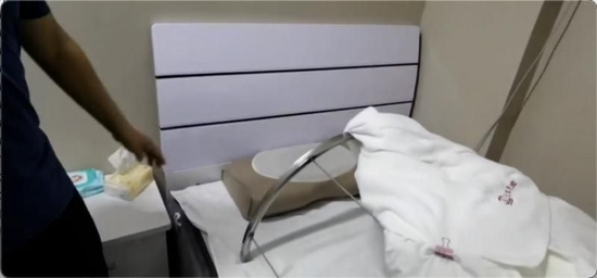 “3D能量舱”究竟为何物?本网调查人员发现,该产品由一个加热床垫、一床薄被和一个枕头组成,顾客需除去全身衣物,躺在提前加热好的床垫上,盖被子捂严实进行“热疗”。根据顾客年龄及身体状况,床垫温度被设置在40℃-70℃左右,每次“热疗”一般为1个小时。