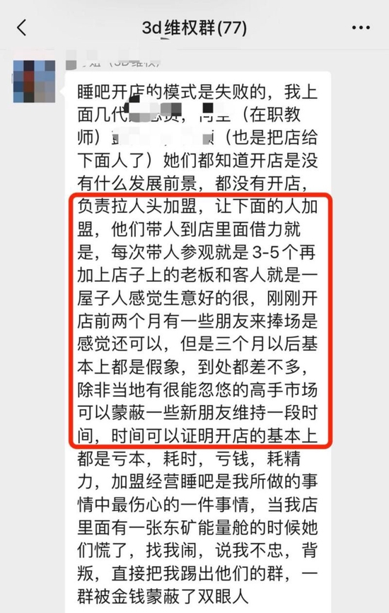 中国质量新闻网调查人员之后进入到由3D能量舱加盟商组建的维权群,70余位加盟商来自全国多个省份,其中42位加盟商透露了加盟费用,总金额达384万元之多。