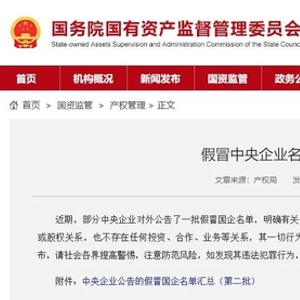 9月20日,国资委官网发布《假冒中央企业名单(第二批)》。详情如下: