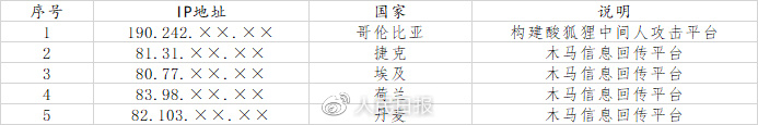 技术分析与溯源调查中,技术团队发现了一批TAO在网络入侵西北工业大学的行动中托管所用相关武器装备的服务器IP地址,举例如下: