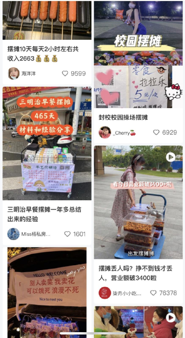 还有过去几年最风光的互联网大厂员工,也加入了这烟火气十足的“创业”中。小红书上就有不少摆摊笔记是互联网从业者贡献的。