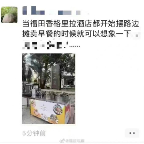 深圳街头,福田香格里拉酒店都开始摆路边摊卖早餐了,而且生意很好。