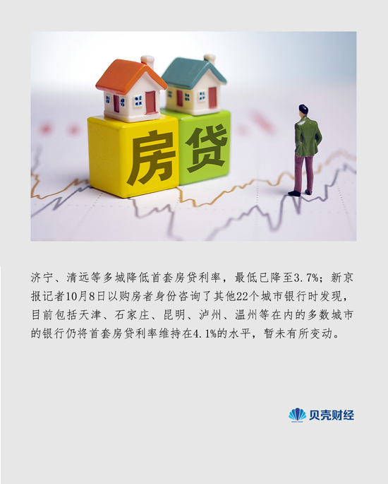 此外,另有部分城市亦持续调降了房贷利率。据新京报贝壳财经记者了解到,广东省阳江市的部分银行已经得到通知,将从10月9日起把首套房贷利率从4.4%调降至4.3%。