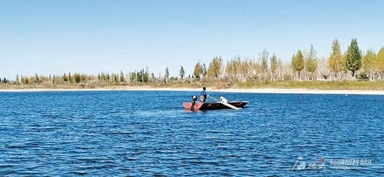 渔民划船到182团水库中央捕捞螃蟹(资料图)。□钱娟摄