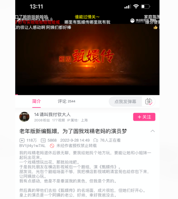 在B站上,这一《甄嬛传》老年版的播放量高达118万。