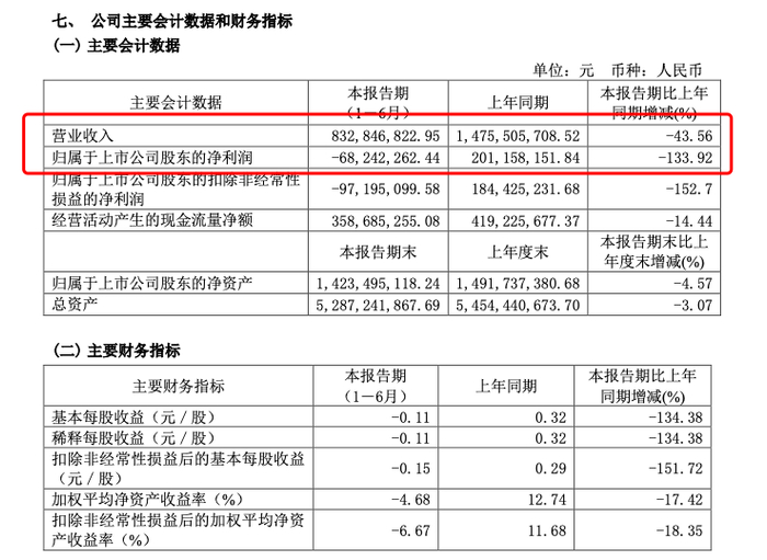 据公司8月发布半年报显示,2022年上半年,公司实现主营收入8.33亿元,同比下降43.56%;归属于母公司的净利润为-6824.23万元,同比下降133.92%。