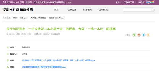 早于去年年初,在深圳市住建局针对一则关于人大建议恢复“一房一本证”提案的回复函中,便直接提到将“双拼房”变更为一套住房,允许其作为“一套房”进行交易和买卖,将会对房地产市场秩序和宏观调控工作带来不利影响。