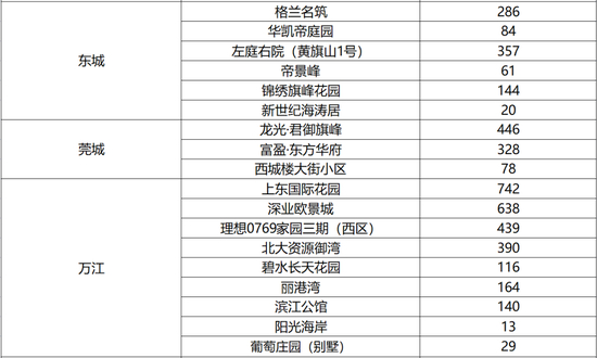 其中南城的万科·翡丽山、天利中央花园、世纪城国际公馆、江南第一城,万江上东国际、深业欧景城以及松山湖万科金域松湖等小区为双证房“多发区”,单项目双证房源已超500套。(各小区详情,见文末表单)