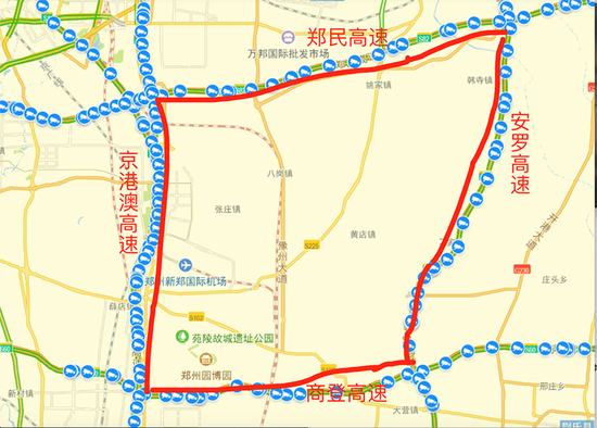 这四条高速的合围区域内,坐落着郑州航空港区,也就是富士康在河南最主要的厂区所在地。