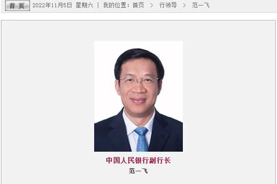 11月5日上午,范一飞的介绍已从央行官网撤下。