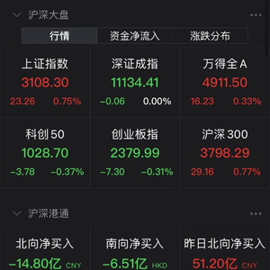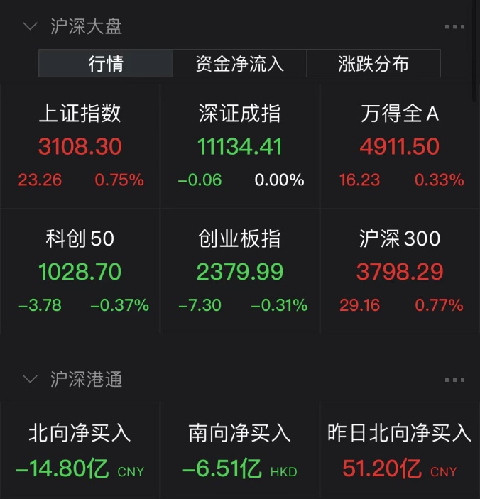 22日上午,临近收盘的最后15分钟,A股开始拉升,截至午间收盘,上证指数上涨0.75%,深证成指平盘报收,创业板指下跌0.31%。北向资金净流出14.8亿元。