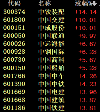 中字头概念也强势拉升,中国交建不到10分钟涨停,最新市值为1062亿元。