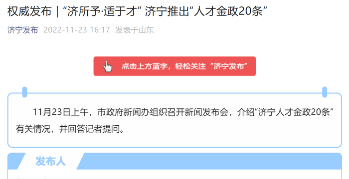 11月23日,山东济宁发布《济宁人才金政20条》,创新实行人才房票制度,2年内购买新建商品住房的可直接抵扣房款,新全职引进以及来济自主创业的博士研究生,市财政分别给予个人最高30万元的人才房票奖励。此外,济宁将5年内由市县国企筹集2万套以上产权型人才住房,以成本价或共有产权方式配售给各类优秀人才。