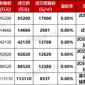 最终,该地块在竞拍时间截止之前最后阶段由武汉硚房集团以底价竞得。此外,除在开拍前一日97号地块官宣延期至12月20日竞拍外,其余5宗地块也均底价成交,6宗地块合计揽金45亿元。