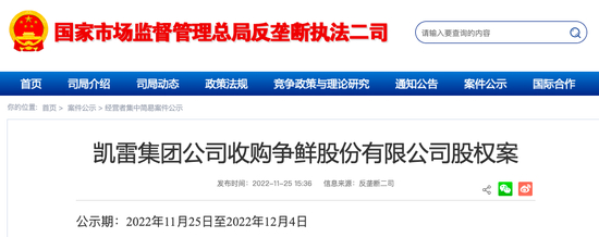 事情起源于一则不起眼的公示——近日,国家市场监督管理总局公示了凯雷集团公司(下称:凯雷)收购争鲜股份有限公司(下称:争鲜)股权案,后者正是连锁餐饮品牌“争鲜回转寿司”的母公司,凯雷在这一次交易中拿下了其26%的股份,并将与陈氏家族共同控制争鲜。