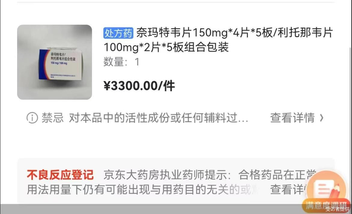 因为目前正在服用免疫抑制剂治疗基础疾病,担心感染新冠病毒后出现重症的概率大,12月13日,王先生以3300元的价格在网上购买了“奈玛特韦片150mg*4片*5板/利托那韦片100mg*2片*5板组合包装”一份,尽管不一定用得上,但在他眼里,这属于备着应急的“保命药”。