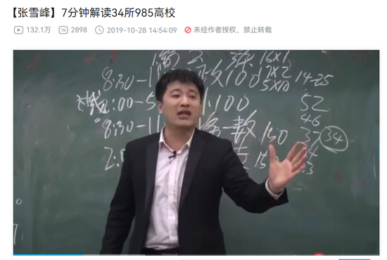 令张雪峰走红的视频《7分钟解读34所985高校》