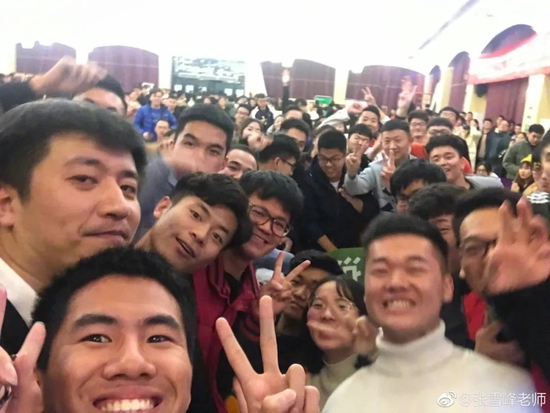 张雪峰(左一)与学生们的合照