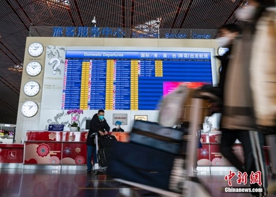 2023年元旦假期首日,旅客前往北京首都国际机场,准备搭乘航班出行。中新社记者 侯宇 摄