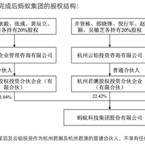 据了解,蚂蚁集团原有的投票权架构是早年为实现员工持股所做的阶段性安排。2013年,为了实现员工持股,杭州君瀚和杭州君澳两大持股平台公司成为蚂蚁的主要股东,由同一家普通合伙人企业(杭州云铂)控制。在云铂层面,马云与其他三名股东签署了一致行动协议。