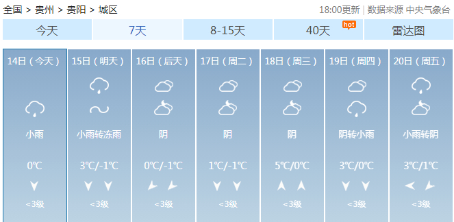 后天贵阳的最高气温就会达到0℃