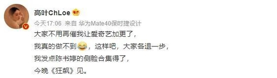 电视剧中陈舒婷的扮演者高叶1月24日发微博表示:“大家不用再催我让爱奇艺加更了,我真的做不到。”