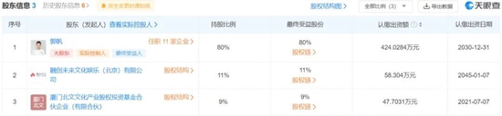 两个月后,孙喆一入股郭帆影业。天眼查显示,目前融创文化为郭帆影业第二大股东,持股11%。