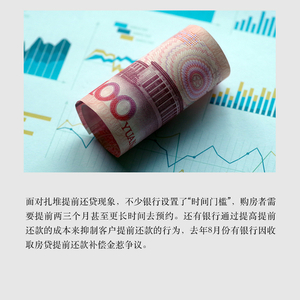 面对扎堆提前还贷现象,不少银行设置了“时间门槛”,购房者需要提前两三个月甚至更长时间去预约。还有银行通过提高提前还款的成本来抑制客户提前还款的行为,去年8月份有银行因收取房贷提前还款补偿金惹争议。