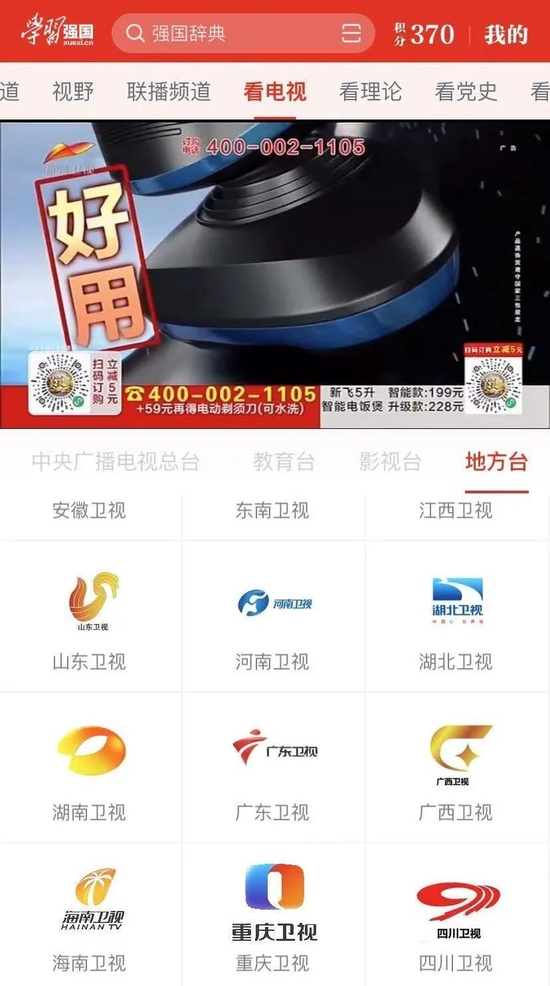 只要下载学习强国的App,首页找到看电视板块,点进去想看哪个台就能看哪个台,没广告,也没有复杂的操作,老年人爱看的新闻联播、新潮电视剧,都有。